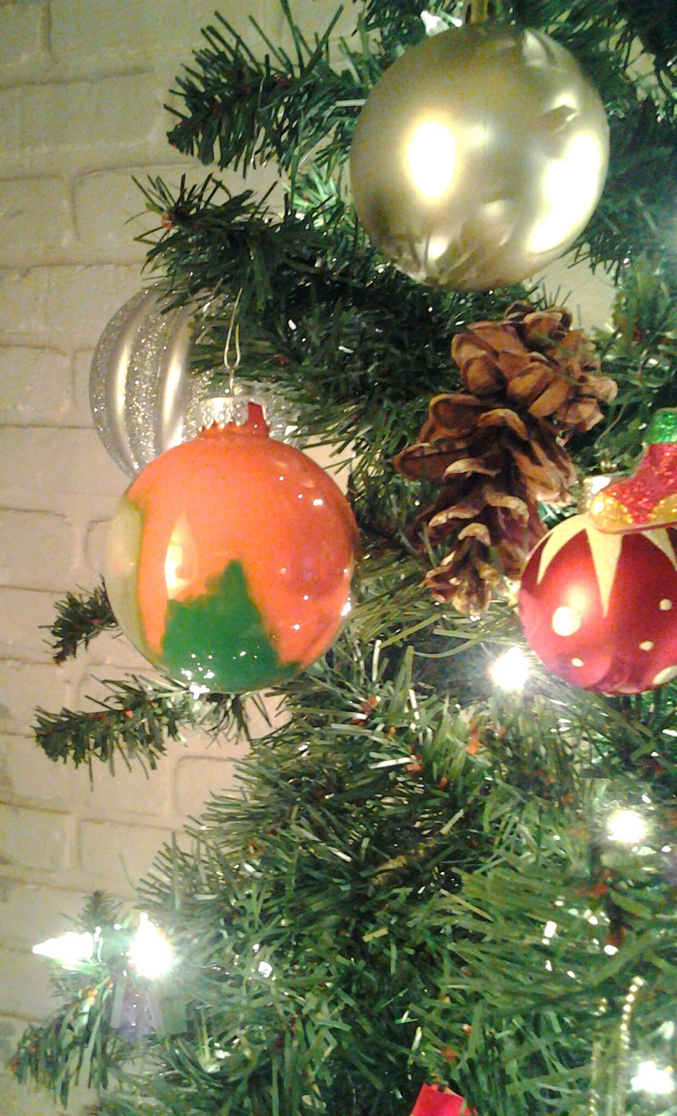 What you do is purchase clear ornaments for any craft store. Stock up now! It's the perfect time since they'll be on sale, you can store them away until next year. Then get any color acrylic paint I will say this, glitter paint sucks! It was clumpy and too opague for what I wanted. Pick at least 3 different colors to give some variety. Now, all you have to do is place paint INSIDE the ornament, swirl it around to coat the entire inside. Beware that the paint will run before drying. You'll have one of a kind balls that give your tree an ecletic look.